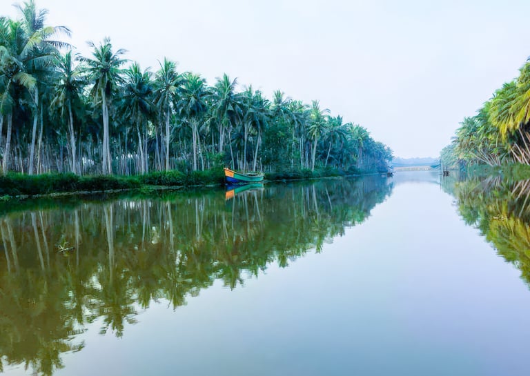 Discover the tranquil charm of Bhimavaram, nestled in the lush heart of the Godavari delta. Stroll or cycle alongside scenic canal-lined roads, where coconut groves and paddy fields sway in the breeze. Begin your day with a spiritual visit to the Somarama Temple, one of the Pancharama Kshetras, known for its striking Dravidian architecture and sacred ambiance.