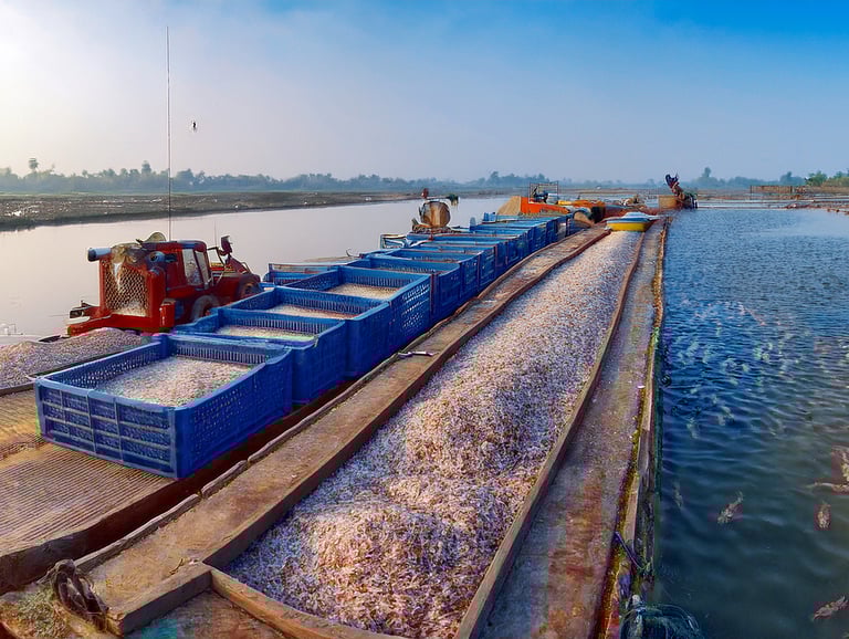 The aquaculture journey here began with experimental pond farming and rapidly evolved into large-scale, science-driven cultivation of Litopenaeus vannamei (whiteleg shrimp). Bhimavaram and its surrounding areas now account for over 60% of Andhra Pradesh’s aquaculture, with more than 40,000 hectares of farms and over 150,000 stakeholders, including farmers, hatcheries, processors, and traders. This collective drive has positioned the region as a powerhouse of India’s Blue Revolution.